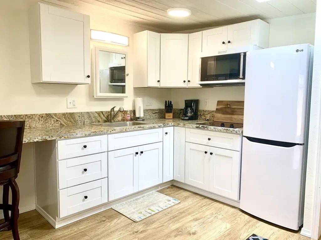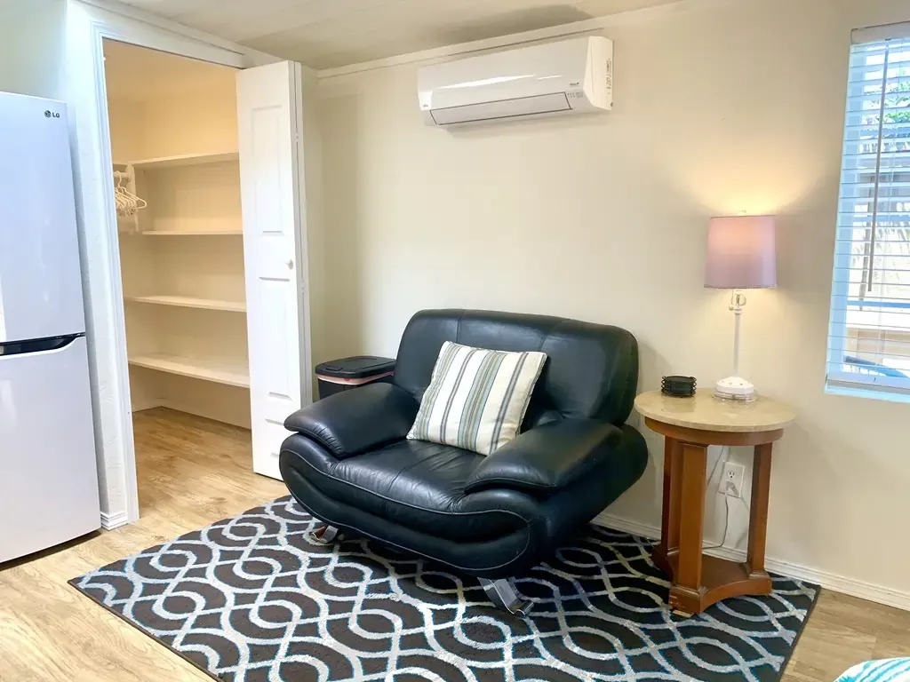 Chelsea Studio is a private villa replete with a gorgeous kitchen, marble style shower, brand new appliances, hardwood laminate floor, giant walk in closet, laundry on site, AIR CONDITIONED, Serta firm 13 inch pillow top mattress. Loaded and 1st class in every regard, private entrance, small private yard, high speed internet, full TV package.