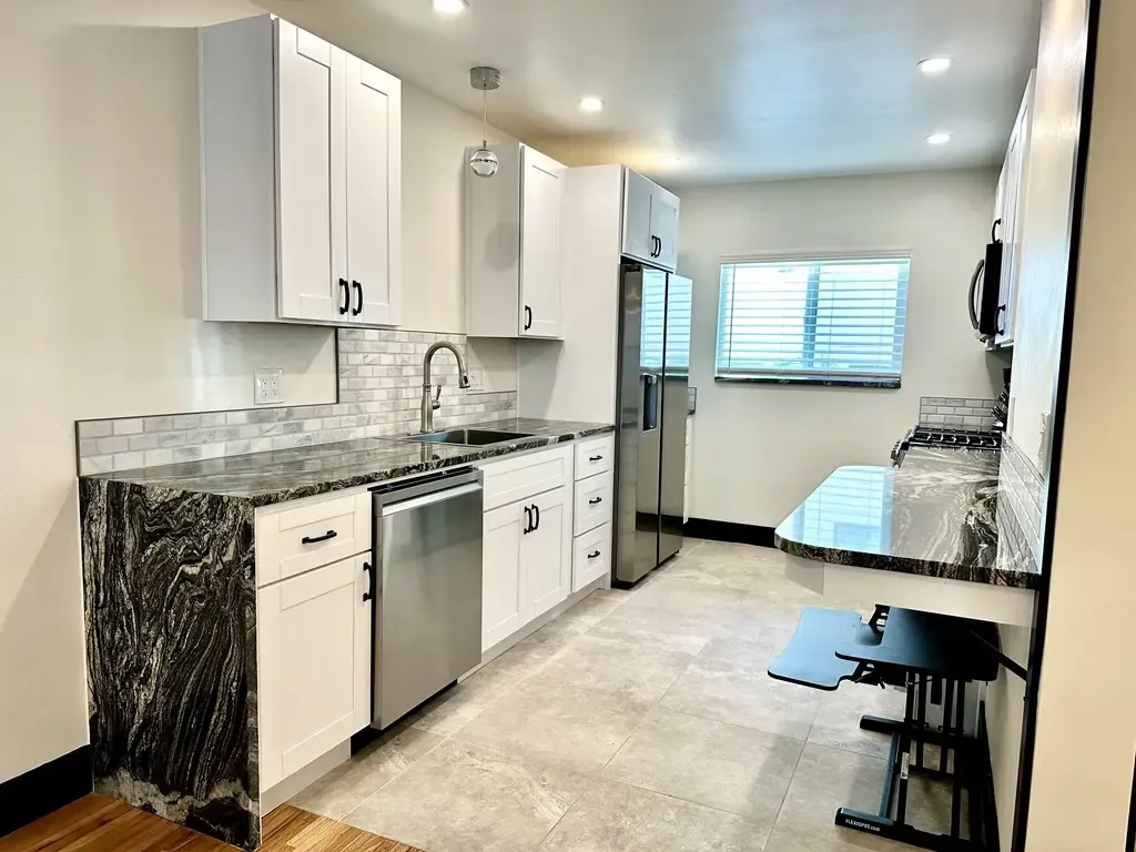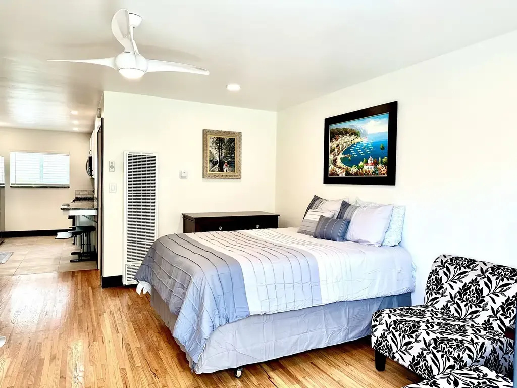 A gorgeous Enormous Studio in La Jolla 200 yards from the sand. Walk to the beach in 2 minutes (or less) All Brand new with top of the line appliances, unbelievable imported 3cm Italian granite, beautiful floors, LED lighting thru out, travertine sealed porcelain walk in shower, dishwasher, garbage disposal, microwave, internet, fully furnished and much much more. also walk to the downtown village of La Jolla in about 10 minutes for shopping and all the dozens of restaurants. Includes the first $100.00 of utilities per month. Easy access to downtown San Diego, UCSD, Scripps. Note pictures will be updated to show all the accents as this is Brand New Re-Model thru out!