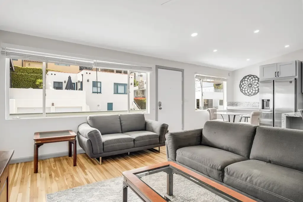 This 820 sq ft 1 bedroom suite is located steps to the beach in a magnificant part of La Jolla. (1 minute walk) A TROPHY PROPERTY in every facet. Located on the corner of Coast Blvd and La Jolla Blvd (7670 La Jolla Blvd. La Jolla, Ca. 92037) near the LJ cove. Spacious 1 bed 1 bath luxurious villa with vaulted ceilings for the those that desire a 1st class location (In Monoply this would be Boardwalk and Park Place). Newly remodeled with State of the art appliances (Samsung top of the line package) and loaded in gorgeous Imported Brazilian Granite. Detailed finishes including ice maker in the double door fridge, totally silent dishwasher, 5 burner stove and professional baking oven, Casablanca style fans, and myriad upgrades beyond comparison!. Most prestigous address in all of San Diego. Surrounded by multi million dollar homes. (and the ocean) The La Jolla Village is a few minute walk away. Fabulous home at the most discerning location in all of Southern Californai awaits your presence!
