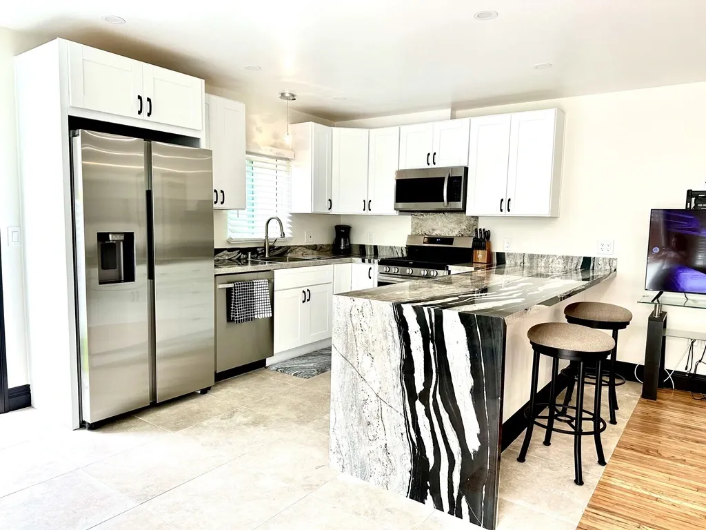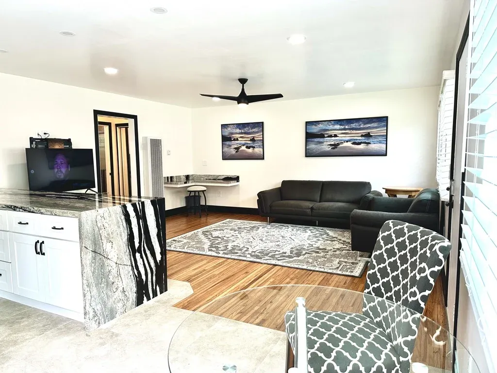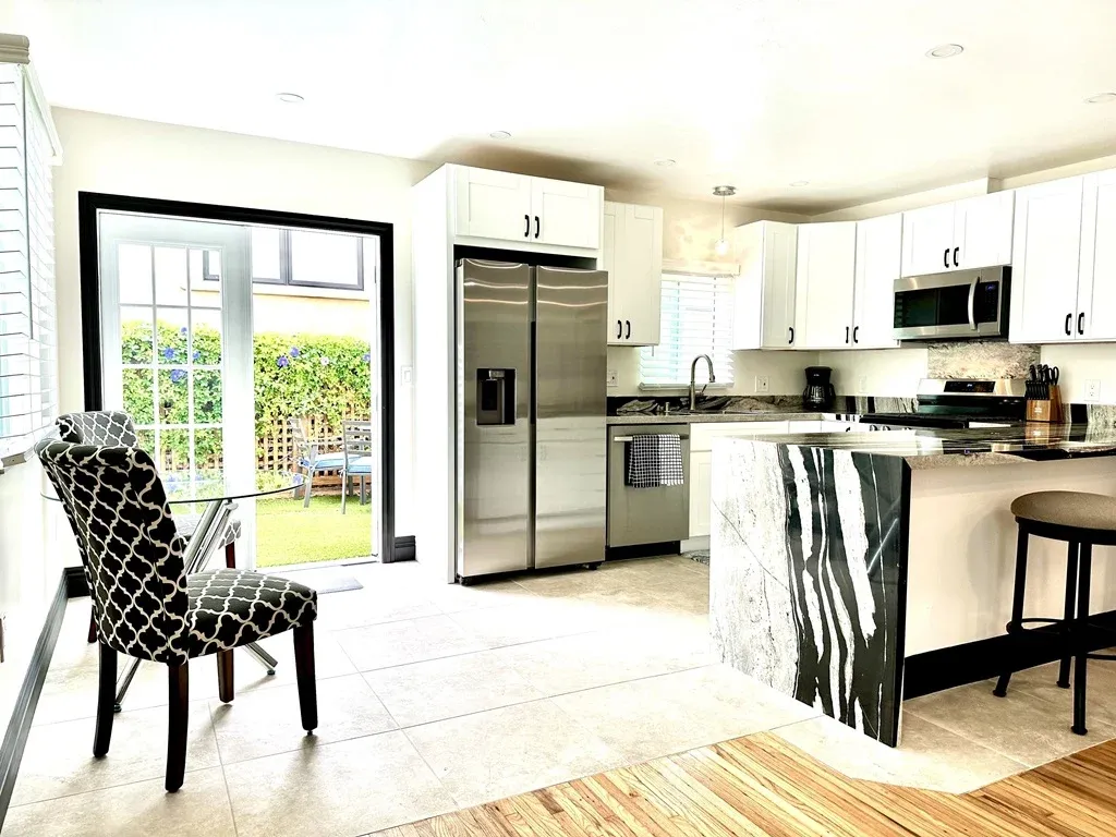 Beautiful 1 bedroom 1 bath villa apartment located LESS Than 2 blocks from the beach, and quick walk to downtown La Jolla. On the corner of Coast Blvd (the most prestigious address in San Diego) Hardwood floors and tile, No carpet. Newly remodeled with the finest details!. Top of the line appliances, full Kitchen with Shaker Cabinets, Italian granite countertops including custom waterfall in stone, Travertine style shower in the awesome bathroom with oversized vanity. Private Backyard with Ocean Views. Indoor or Outdoor Dining ( your choice)! 240 volt charger for EVO for your Tesla. This is a million dollar villa!!