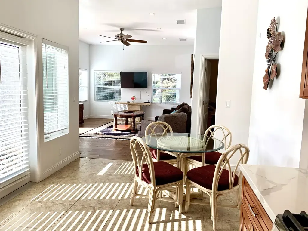 A gorgeous single family PRIVATE home replete with it's own beautiful front yard and 3 full off-street parking spaces. 3 Bedrooms with 3 FULL Bathrooms (2 masters with private bath in each) AND walking distance to the beach, the bay, shopping and restaurants. Huge 10 foot ceilings, fully tiled, and hardwood floors. Immaculate thru out. Quartz countertops. State of the art brand new appliances. Included Utilities, High speed Internet,