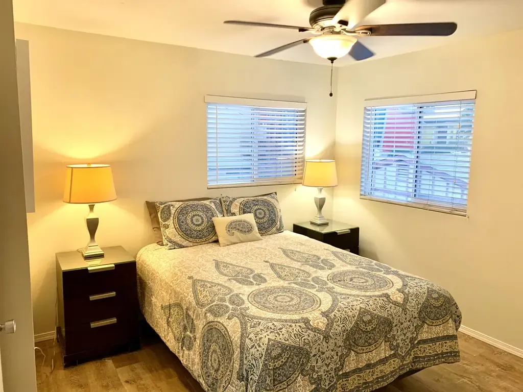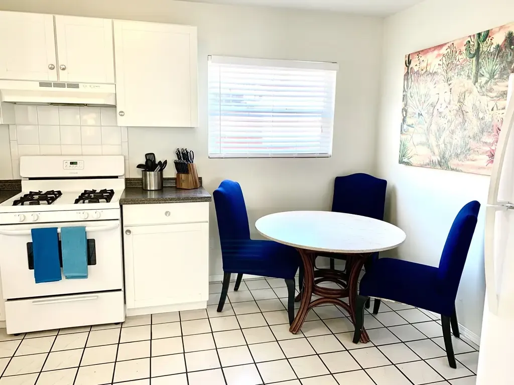 Blue Point Villa is a lovely 2 bedroom 1.5 bath apartment located one short block from the beach. It is upgraded with tile and hardwood laminate floors (no carpet anywhere). It has tiled countertops, modern appliances, high speed internet and a full TV package. It also includes utilities up to $100.00 per month, and has a 24 hour laundry room onsite, Private off street parking (for one car) and fully furnished. An awesome experience for those that want to be close to the beach and boardwalk. Shopping and restaurants are all walking distance.