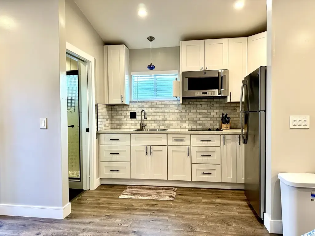 A beautiful Studio walking distance to Mission Beach (less than 3 minue walk), restaurants, shopping (Ralphs Supermarket a block away) and close to the bay. Fabulously located on Thomas Av. Pacific Beach Sn Diego! . Furnished and under market price. High Speed Broadband Internet, Digital Tv, and all the comforts of a small studio home. Has it's own private area too. Washer/Dryer on site plus tankless water heater/ Air Conditioned. NEWER APPLIANCES including top of the line Samsung fridge/freezer (with ice maker) and convection microwave. Bathroom is all tiled ALL floors are top of the line laminate hardwood (no carpet anywhere). This is a beautiful studio beach home for the discerning.