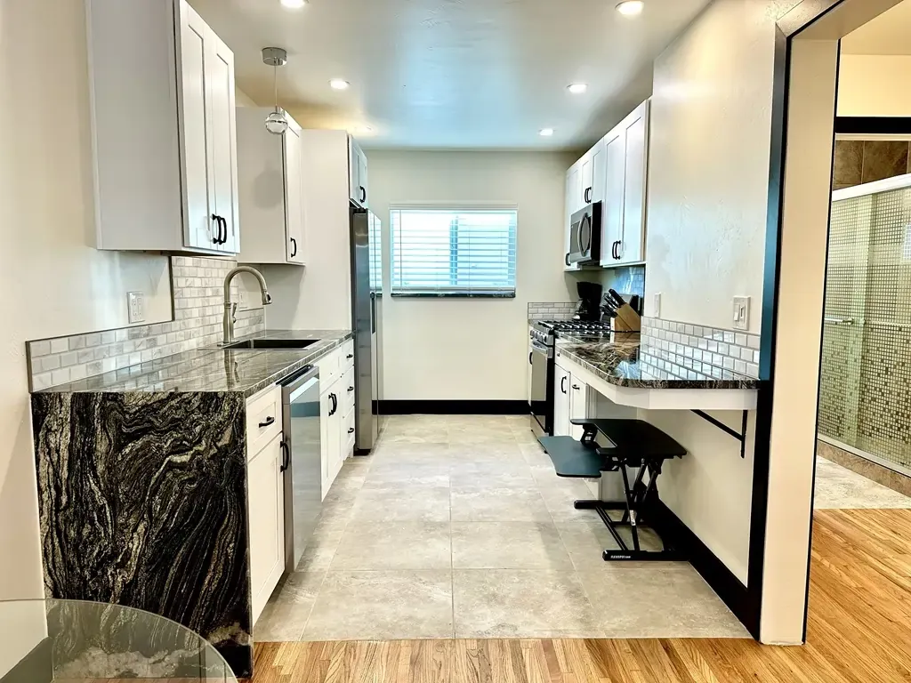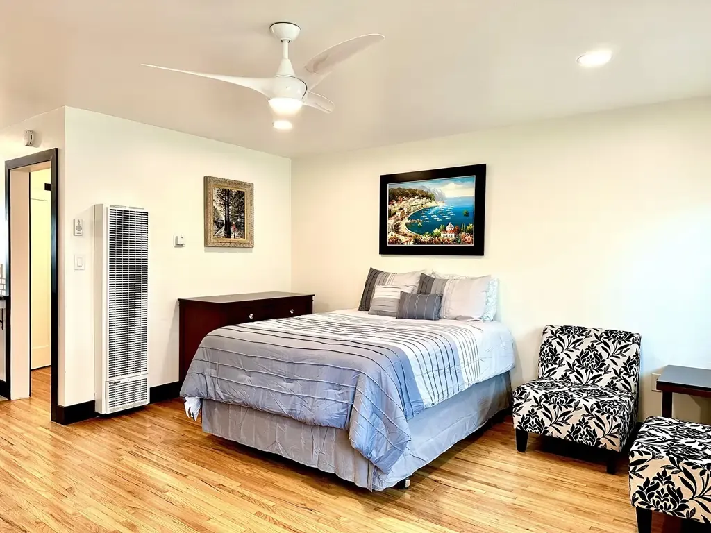 A gorgeous Enormous Studio in La Jolla 200 yards from the sand. Walk to the beach in 2 minutes (or less) All Brand new with top of the line appliances, unbelievable imported 3cm Italian granite, beautiful floors, LED lighting thru out, travertine sealed porcelain walk in shower, dishwasher, garbage disposal, microwave, internet, fully furnished and much much more. also walk to the downtown village of La Jolla in about 10 minutes for shopping and all the dozens of restaurants. Includes the first $100.00 of utilities per month. Easy access to downtown San Diego, UCSD, Scripps. Note pictures will be updated to show all the accents as this is Brand New Re-Model thru out!