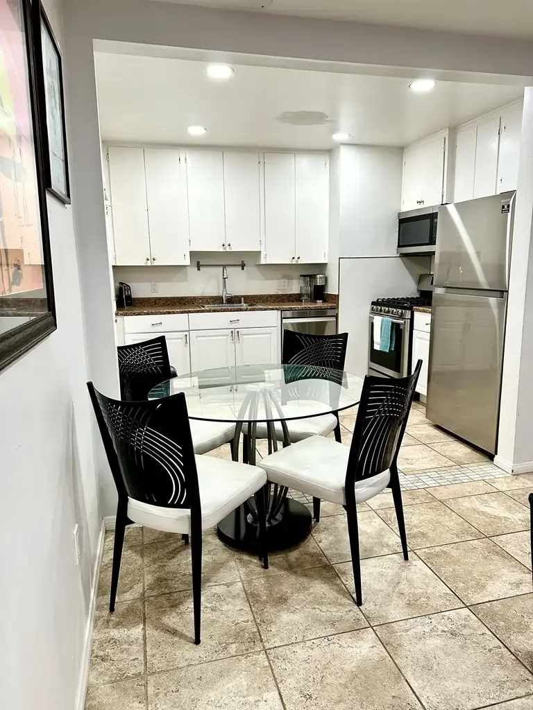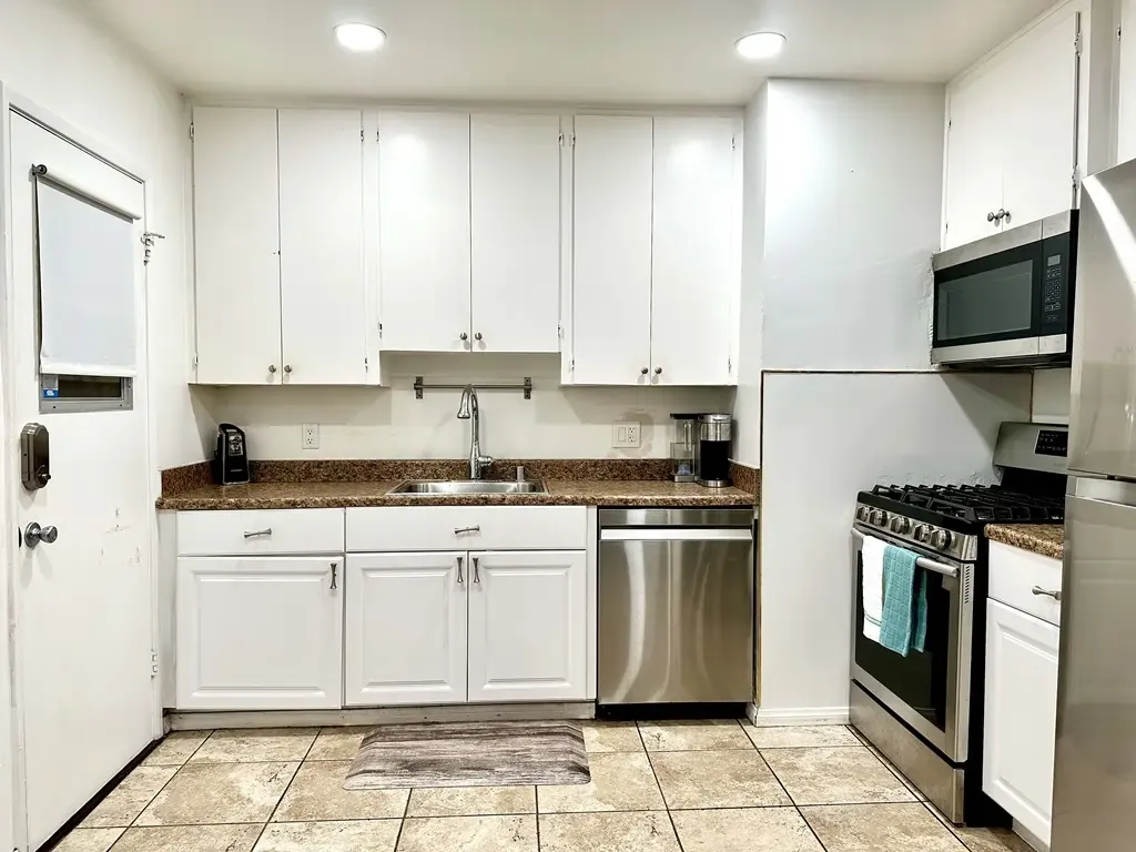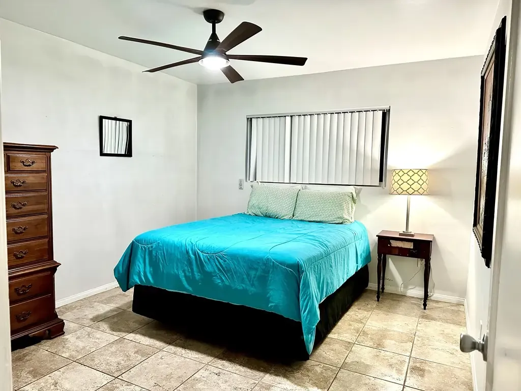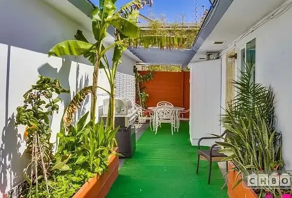 Steps to the sand, beach, and boardwalk! Beautiful upgraded villa apartment complete with private fenced in backyard. Includes two designated private parking spaces. AIR CONDITIONED! All appliances modern. All flooring tiled in travertine sealed porcelain. Includes High Speed Broadband Internet, and complete TV package. Top of the line beds and mattresses. 2 bedroom 1 bath with a walk in closet. Incredible location one block off the sand. This gives you privacy AND THE BEACH. Laundry room on site. All one story with no neighbors above or below. Spacious grounds for open and airy living